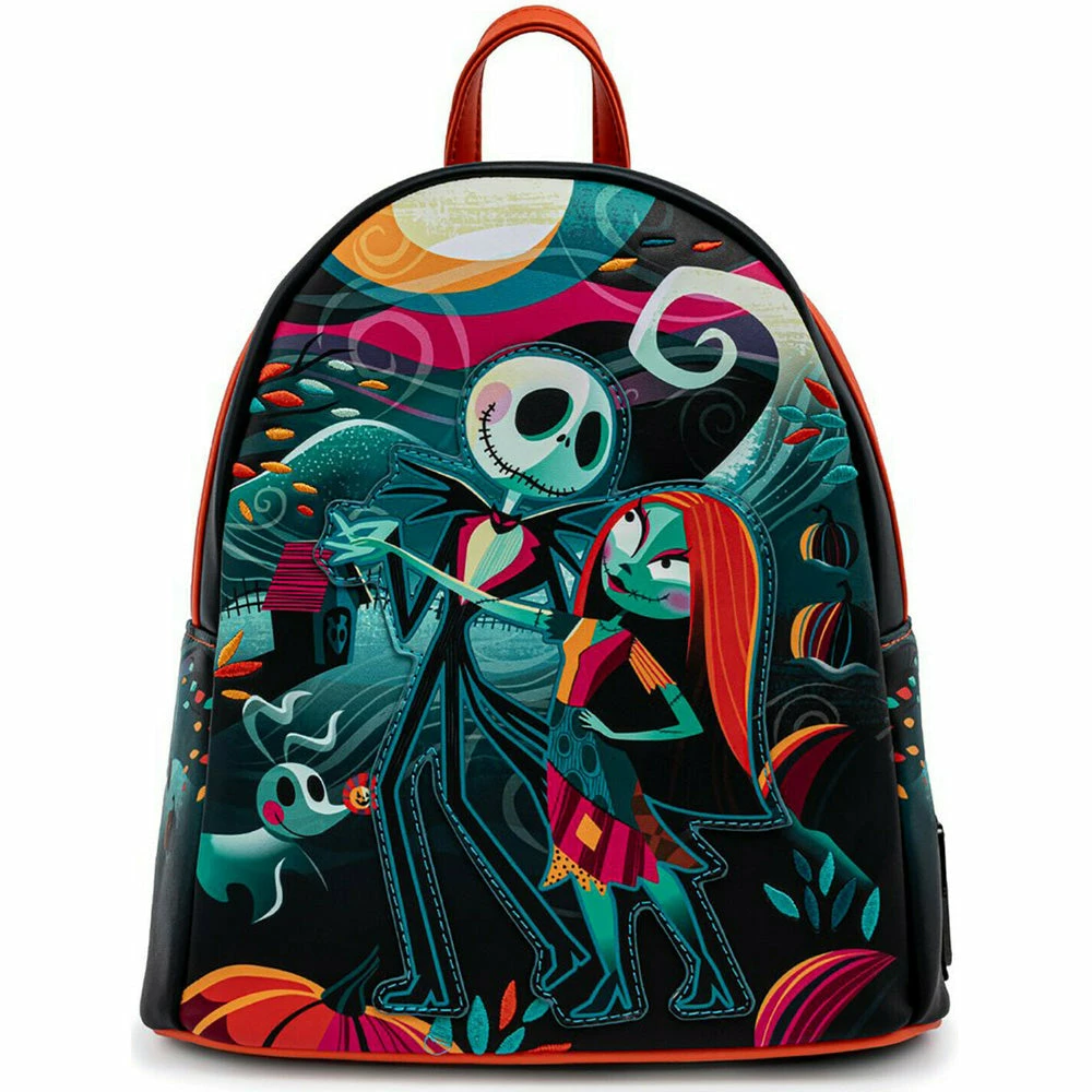 The new Disney The Nightmare Before Christmas Simply Meant to Be Mini Backpack will have you, and your Loungefly collection, singing on the hilltop! The pattern features Jack Skellington and Sally in vibrant colors as they dance their way up the hill in the moonlight. Zero even makes an appearance among the pumpkins and autumn leaves as bats fly in the breeze. This bag is great for a Halloween-themed outfit or for everyday use.