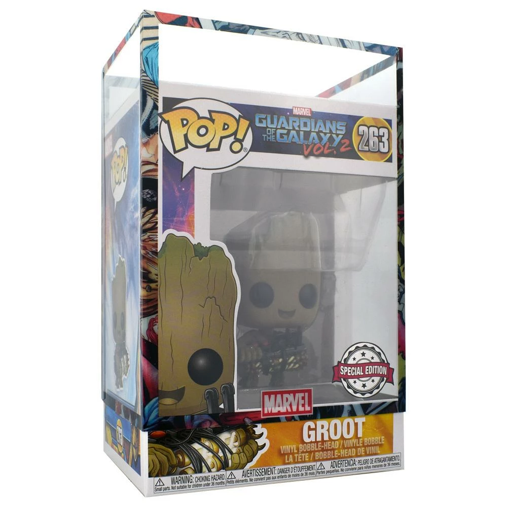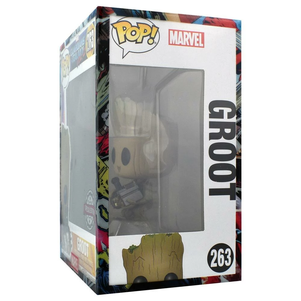 This Groot Funko Pop! Vinyl comes in a Free PPJoe Marvel Sleeve and Pop Protector. He measures approximately 3-3/4 inches tall.