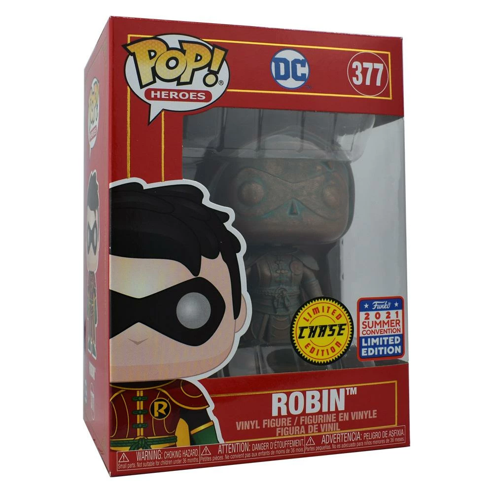 This Chase Version of the original Robin (Patina) from the Imperial Palace Pop! collection differs slightly in the cape’s design, giving it its rarity. Don’t miss your opportunity to add this unique Chase Version of Robin (Patina) to your limited-edition Pop! collection. Â