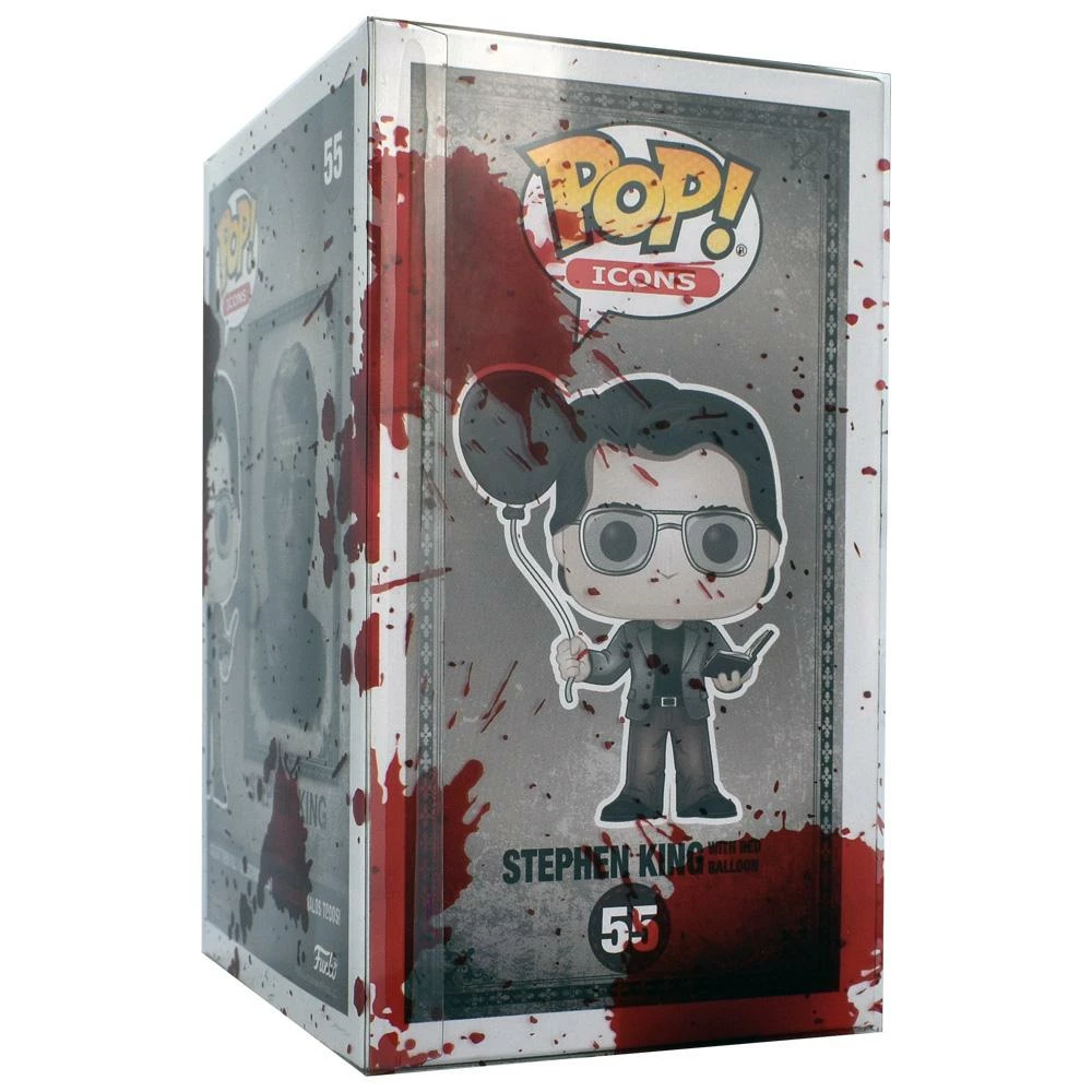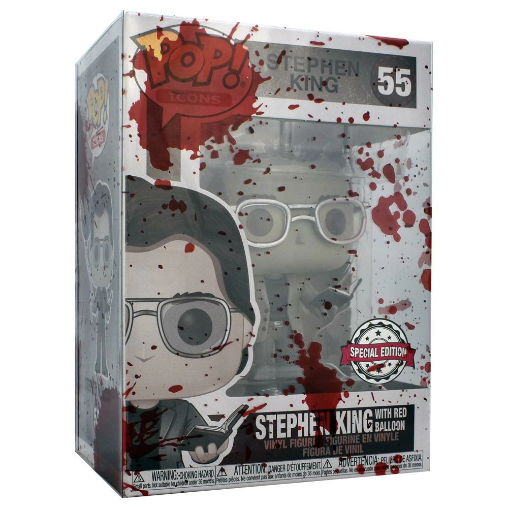 This Special Edition Stephen King Funko Pop! Vinyl comes with a Free Blood Splattered Sleeve and Pop Protector. He measures approximately 3-3/4 inches tall.