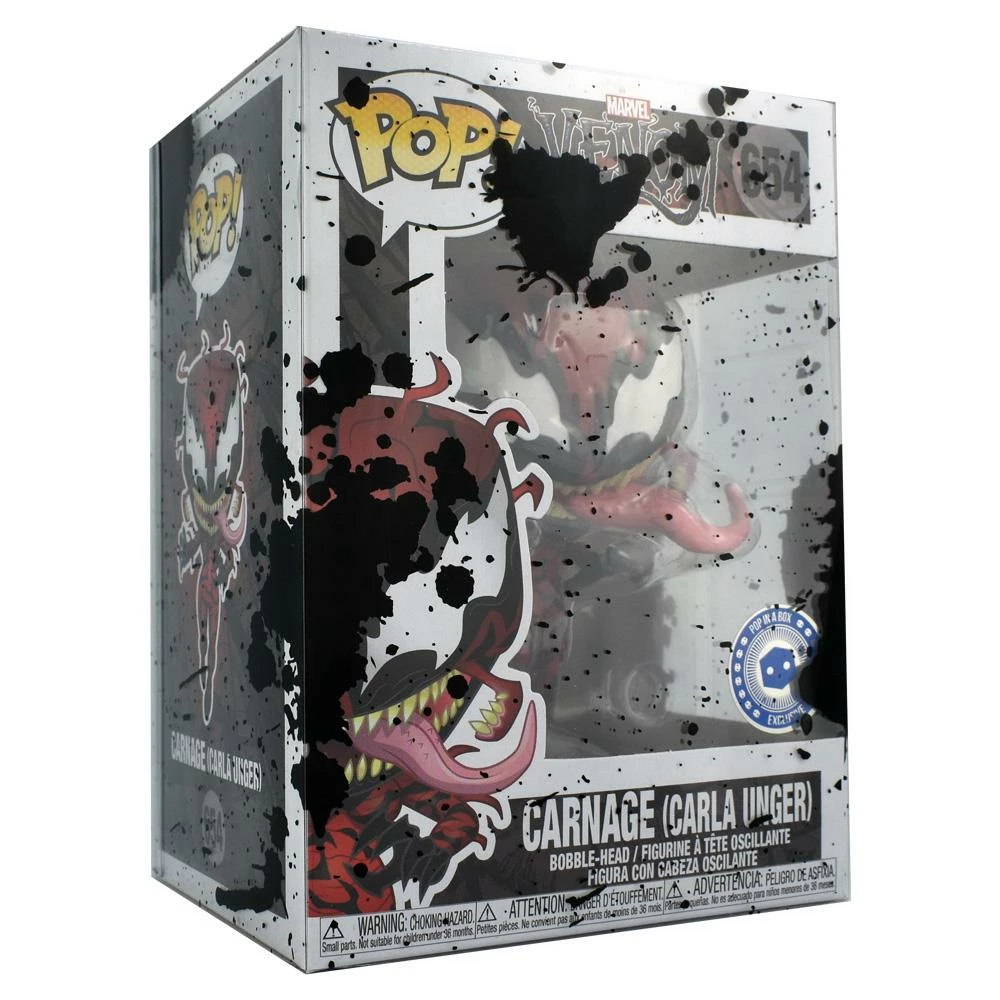 This Pop in a Box Exclusive Carnage Funko Pop! Vinyl comes in a Free PPJoe Black Blood Splattered Sleeve and Pop Protector. He measures approximately 3-3/4 inches tall.