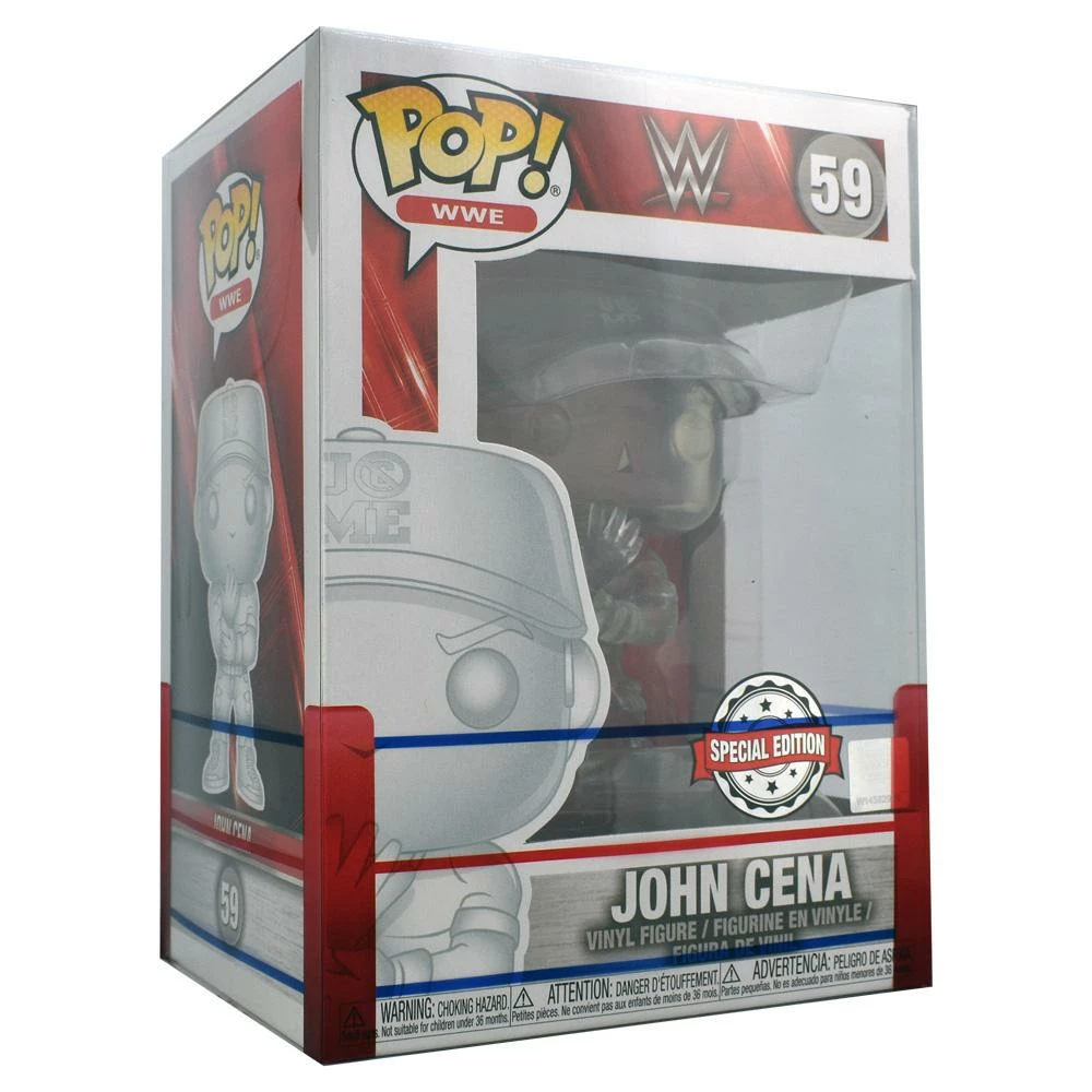 This Special Edition John Cena Funko Pop! Vinyl comes with a Free WWE Sleeve and Pop Protector. He measures approximately 3-3/4 inches tall.
