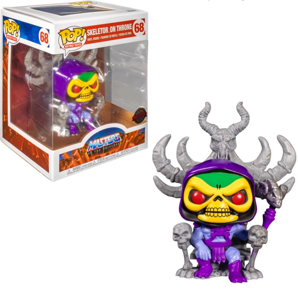 Skeletor makes an appearance to try and tackle He-Man head on, no middlemen. Help Skeletor face He-Man in your Masters of the Universe collection with this Pop! of Skeletor on his throne. Vinyl figure is approximately 7-inches tall.