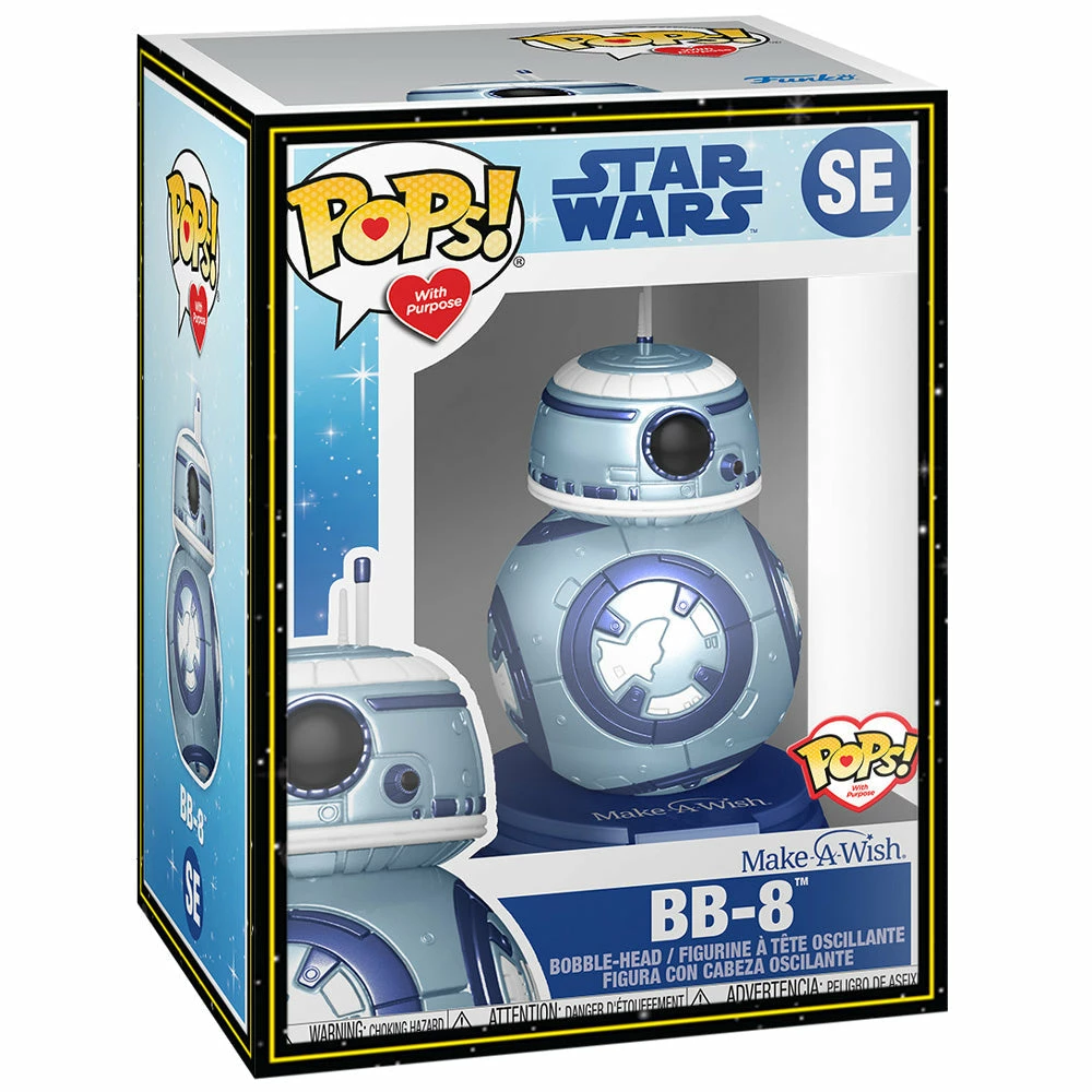 In partnership with Make-A-Wish comes this new line of Funko Pops! Featuring iconic Disney, Pixar, Marvel, and Lucasfilm characters. Each character is seen in a stunning metalic blue and comes with a Make-A-Wish sticker! A donation will be made to Make-A-Wish, with every figure sold.